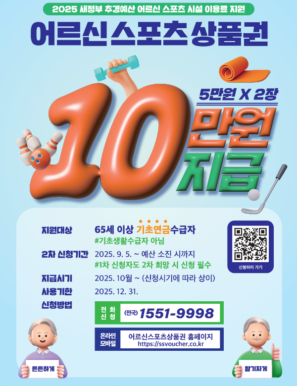 선정 절차에 따라 1차 신청자 가운데 지원 대상이 확정되며 8월 말에 결과가 발표됩니다. 선정된 어르신들은 9월부터 스포츠 상품권을 실제 현장에서 사용할 수 있으며 상품권 사용 기한은 10월 31일까지입니다. 따라서 상품권을 지원받은 경우에는 반드시 사용 기간 내에 활용해야 하며 기한이 지나면 사용할 수 없습니다.